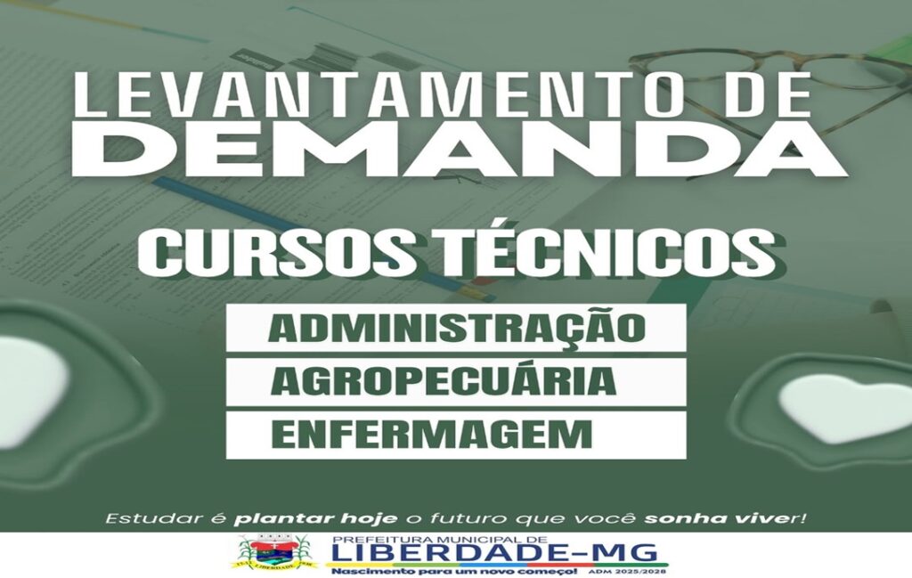 A Prefeitura Municipal de Liberdade está realizando um levantamento para identificar o interesse da população na abertura de novos cursos técnicos para o ano de 2026.A capacitação profissional é essencial para o crescimento pessoal e para o desenvolvimento do nosso município.